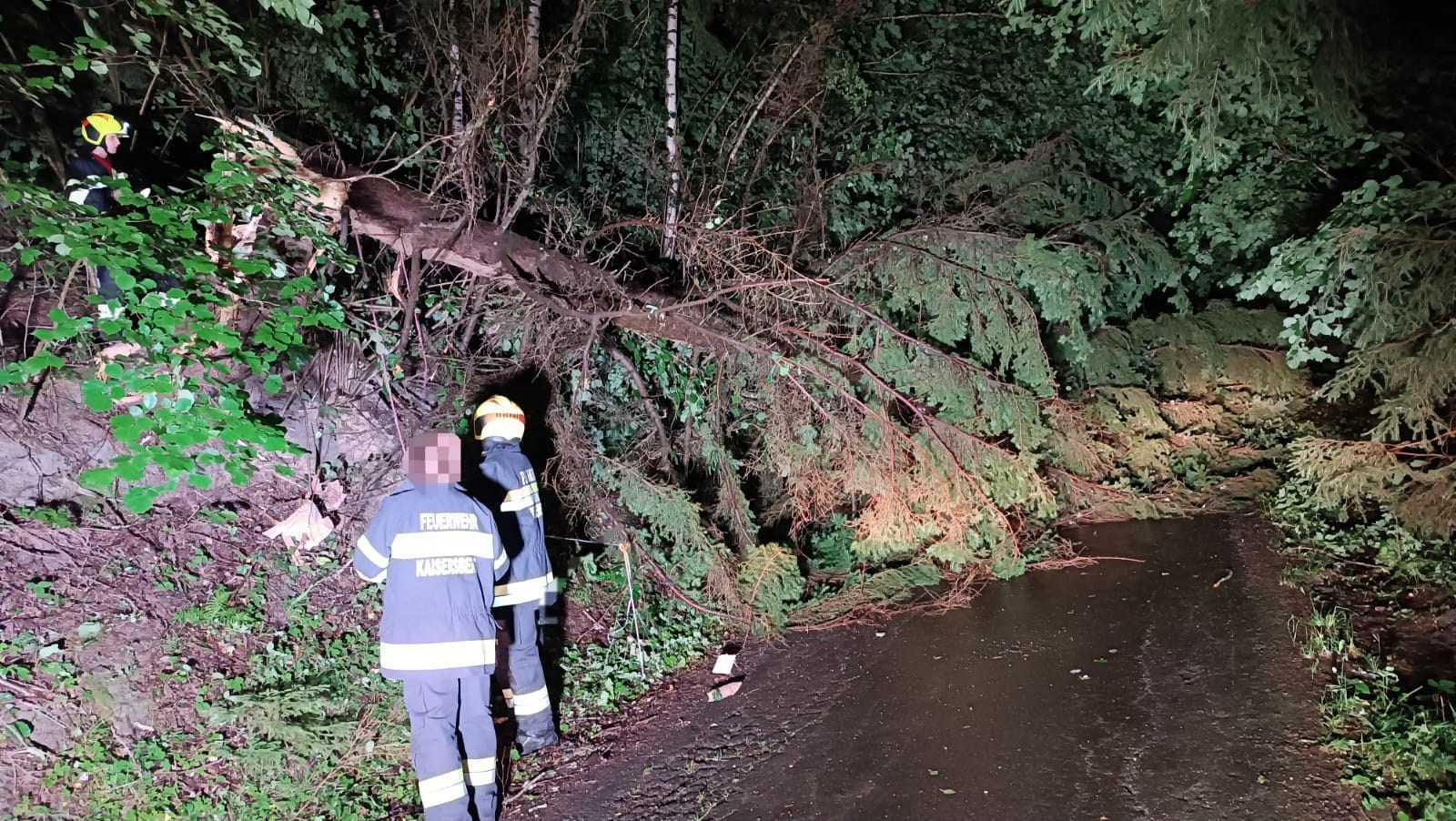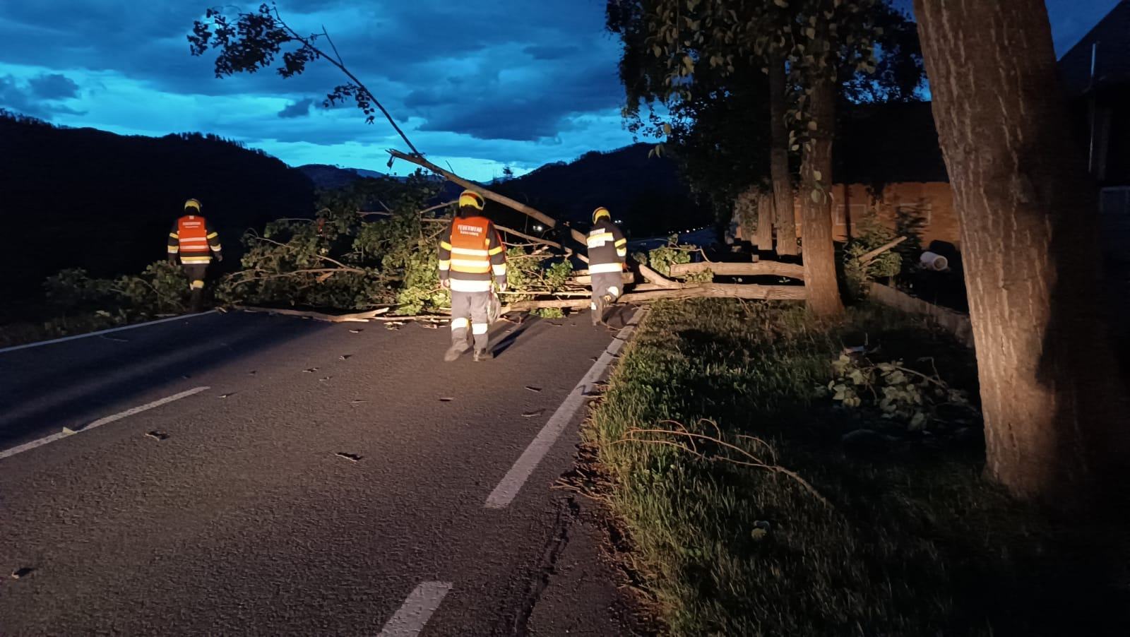 Insgesamt wurden wir zu 5 Einsatzszenarien gerufen. Der erste Alarm galt einem Baum auf der Bundesstraße Richtung Kraubath, wo sich gut eine Kilometer weiter noch ein weiterer auf der Fahrbahn befand. Zeitgleich rückte unser MTF-A in den Preßnitzgraben aus um die Straße dort wieder befahrbar zu machen.